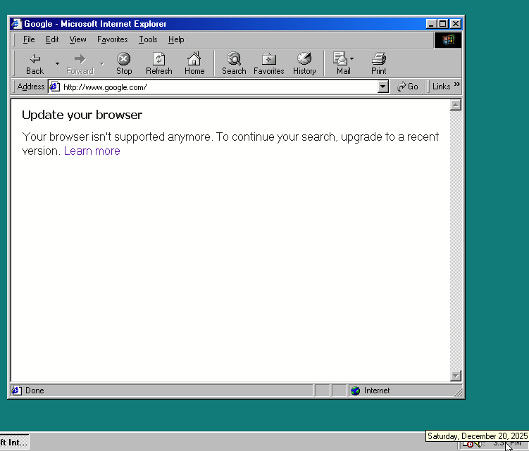 Yep,i get it,Niche or old browsers is served the basic browsing version where the advanced features are disabled and you can only search,but somehow AI scrapers tries to spoof their useragent into making Google think you’re using a old browser,and they can easily scrap it? Apparently Google is worried about it so they had to block older browsers from accessing it,hoping AI scrapers won’t scrape Google,right? I hope this is temporary…