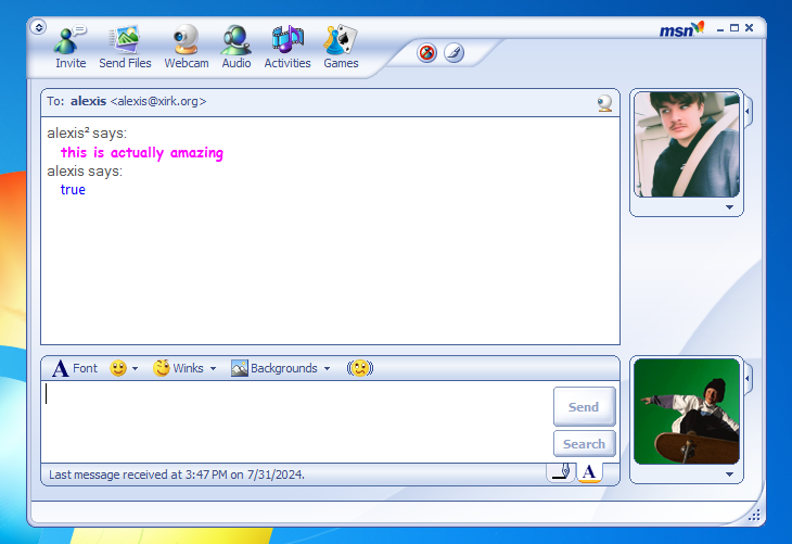 i’m pretty sure i’ve fully implemented everything up to MSNP version 11, which means i’ll start working on the newer versions, you can currently log in up to MSN 7.0 using Xirk which is fun tho