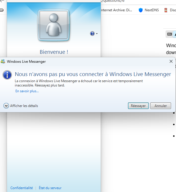 Windows live messenger 2009 says “We couldn’t sign you in, the services may be temporarily down”